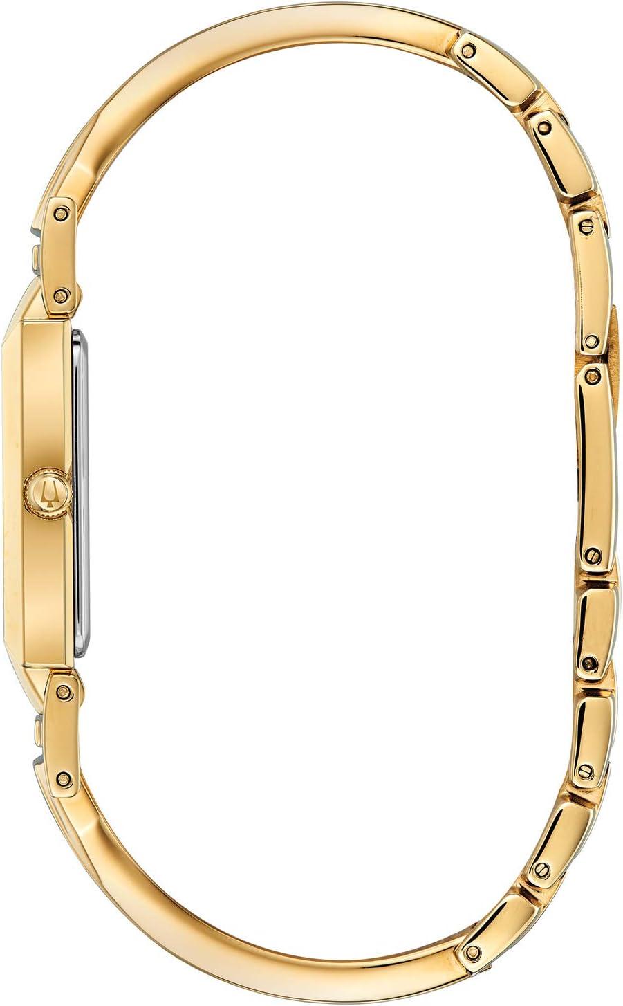 Bulova Ladies’ Classic Diamond Dial Quartz Stainless Steel Watch, Rectangle, Mother-of-Pearl(Gold Tone)