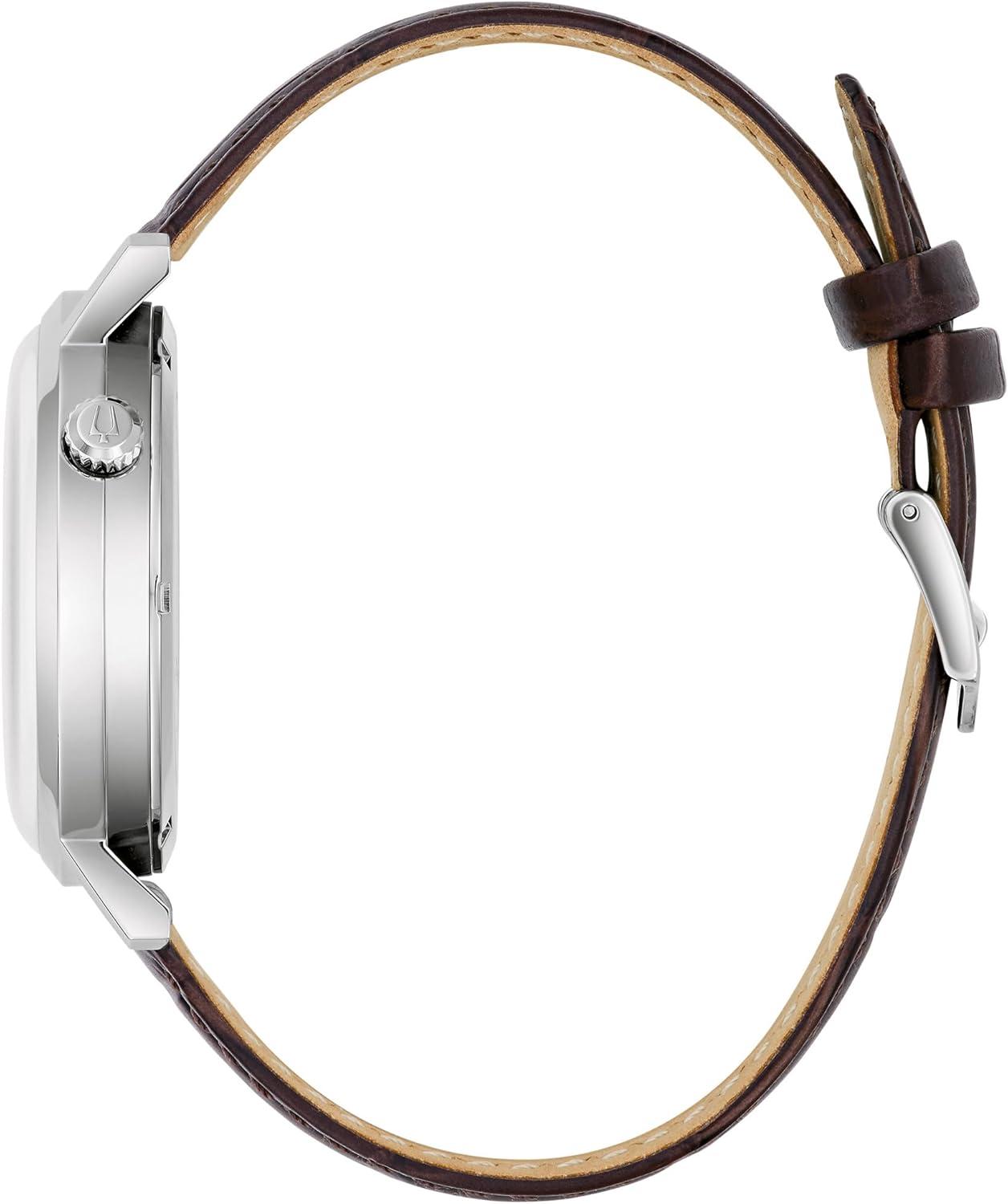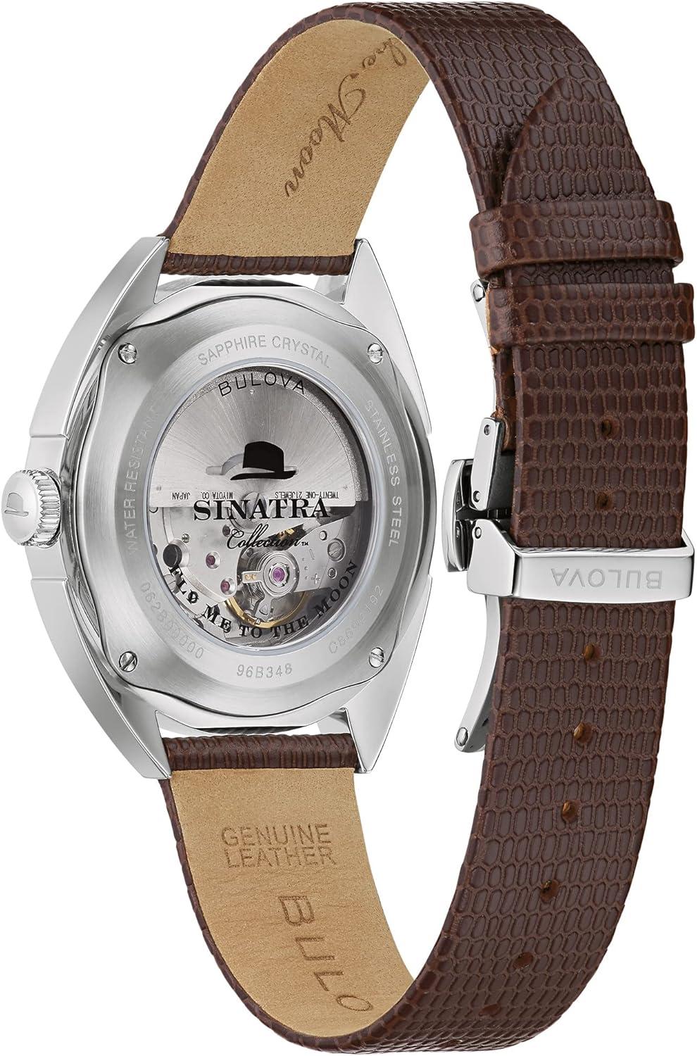 Bulova Men’s Frank Sinatra ‘Fly Me to The Moon’ Automatic Stainless Steel Case Watch, Textured Leather Strap, 42 Hour Power Reserve, 3 Hand(Brown Strap/Black Dial)