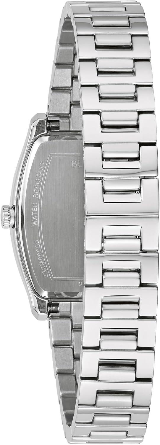 Bulova Ladies’ Classic Diamond Dial Quartz Stainless Steel Watch, Rectangle, Mother-of-Pearl(Silver/Black Dial)